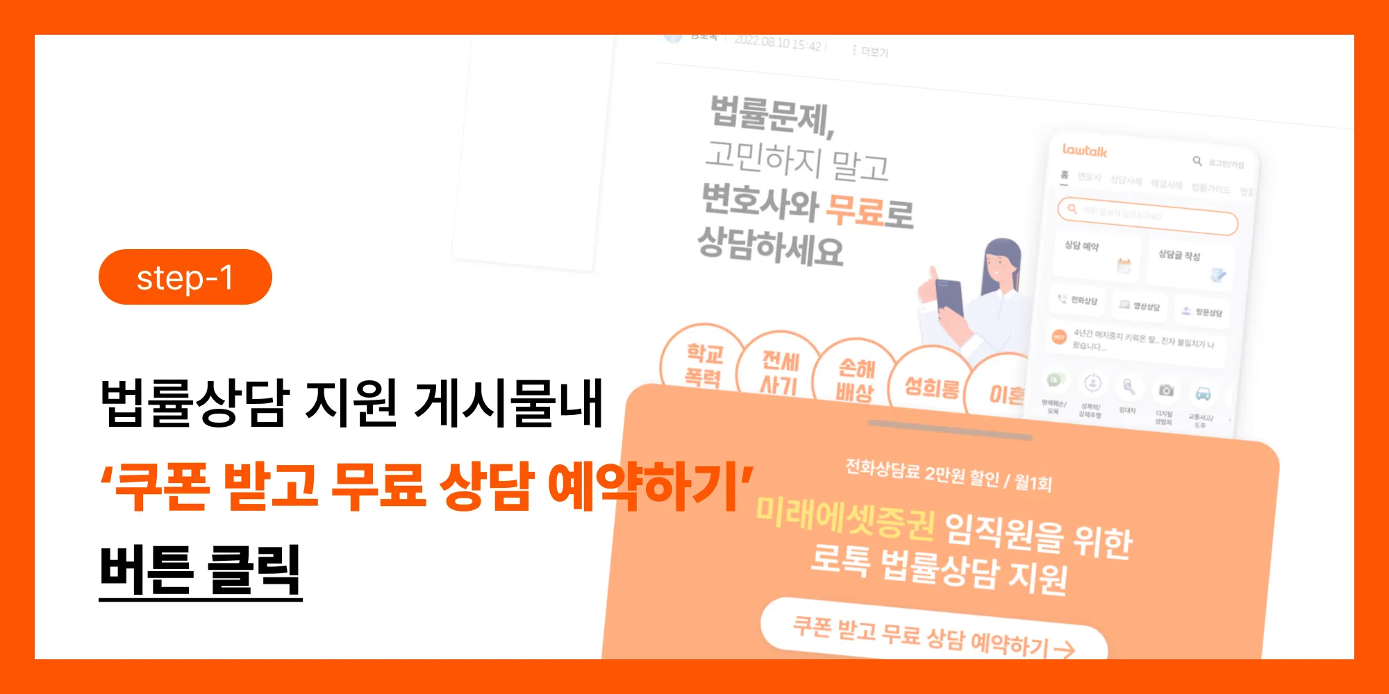 전화법률상담 1회에 사용할 수 있는 쿠폰의 최대 금액은 2만원으로 제한됩니다.